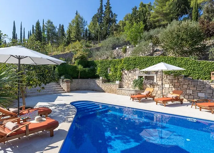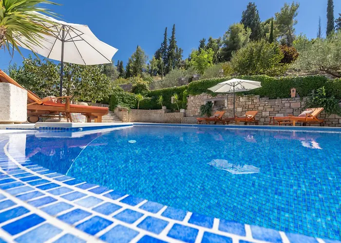 "Villa Kostela"-Villa In Nature With 4 Bedrooms, 2 Bathrooms And 2 Kitchens dispose d'une terrasse avec vue sur le jardin, ainsi que d'une piscine. Proposant du Wi-Fi, la villa est située à environ 2 km de Park Prirode Sutivan.